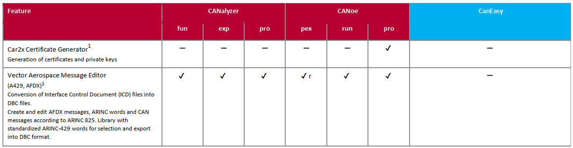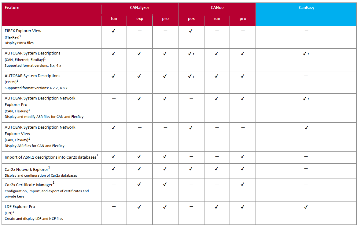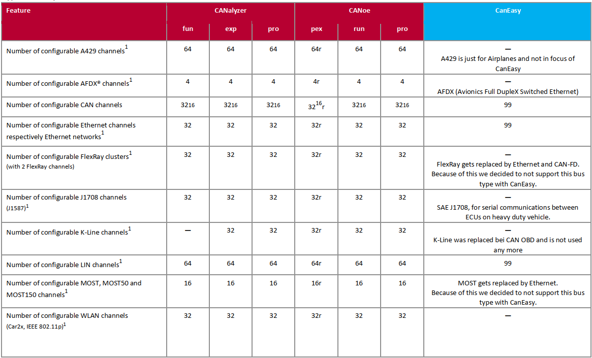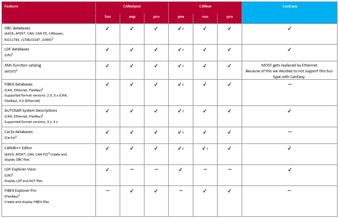 說明:CANeasy支持CANFD),LIN和車載以太網,因看不到MOSTFlexray的未來趨勢,故未支持。