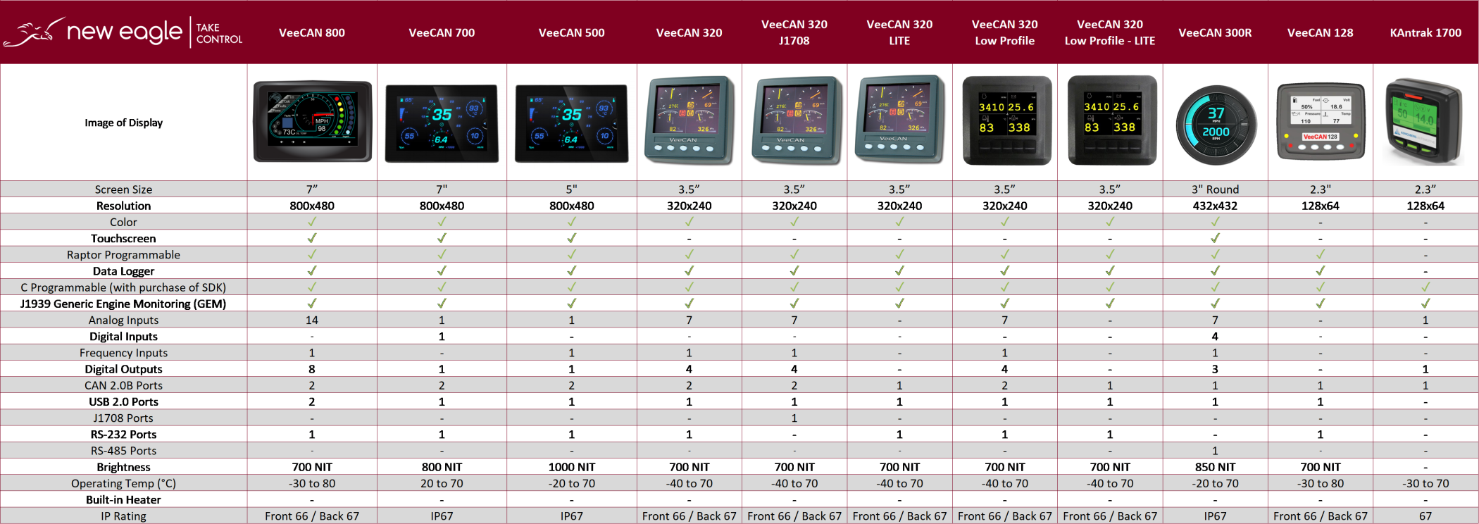顯示模塊的種類很多,可以滿足任何汽車、液壓、船舶或發動機應用。